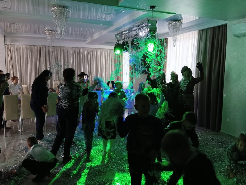 В завершении программы Вас ожидает сюрприз! Баба Яга накроет праздничный стол с детским шампанским, конфетами, пирогами и мандаринами. Устроит дискотеку с серебряным шоу, ребята со сказочными героями будут водить хороводы вокруг ёлки и петь песни. И детям и взрослым будет весело!