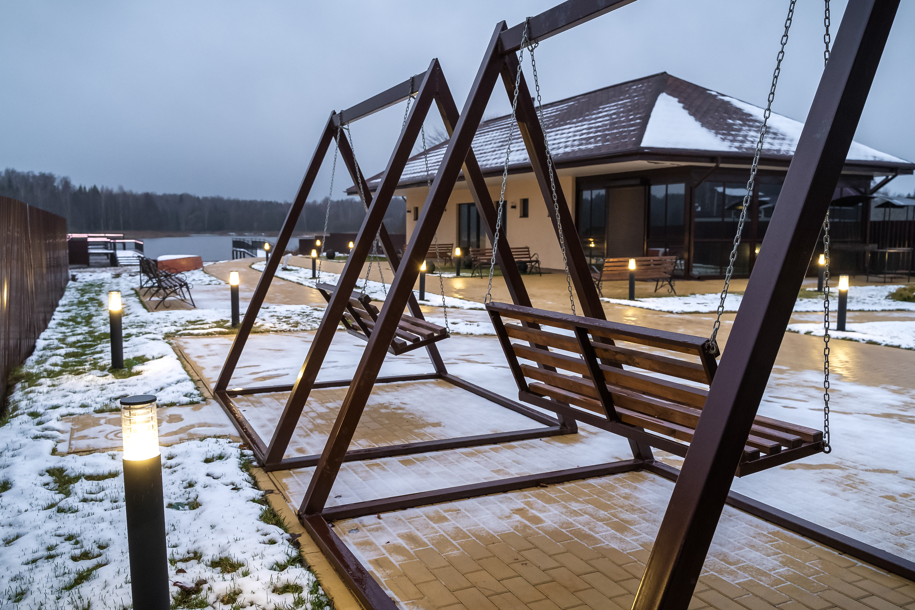 На территории Гостевого дома «Жемчужина» имеется 2 обогреваемых беседки закрытого типа с тонированными окнами. Беседки оборудованы удобными мягкими стульями, столами и магнитофоном. Около беседок имеется мангал. На территории оборудована небольшая парковая зона с качелями для взрослых и детей, а также выход к воде и пирс с ночной иллюминацией.
